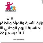 بيان وزارة الأسرة والمرأة والطفولة وكبار السن بمناسبة اليوم الوطني للأسرة الموافق لـ 11 ديسمبر 202211 ديسمبر 2022