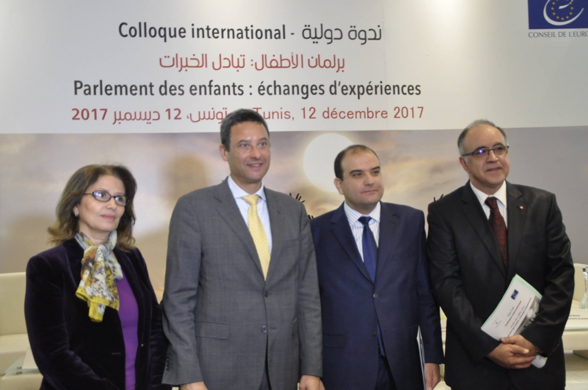 أشرف السيد أنيس دلهومي، رئيس ديوان وزارة المرأة والأسرة والطفولة، صباح اليوم الثلاثاء 12 ديسمبر 2017، على افتتاح الندوة الدولية حول "برلمان الطفل: تجارب مقارنة" التي ينظمها مرصد الإعلام والتكوين والتوثيق والدراسات حول حماية حقوق الطفل بالتعاون مع مجلس أوروبا بتونس بحضور خبراء في المجال وبمشاركة أطفال نواب من تونس ومن برلمانات أوروبية.