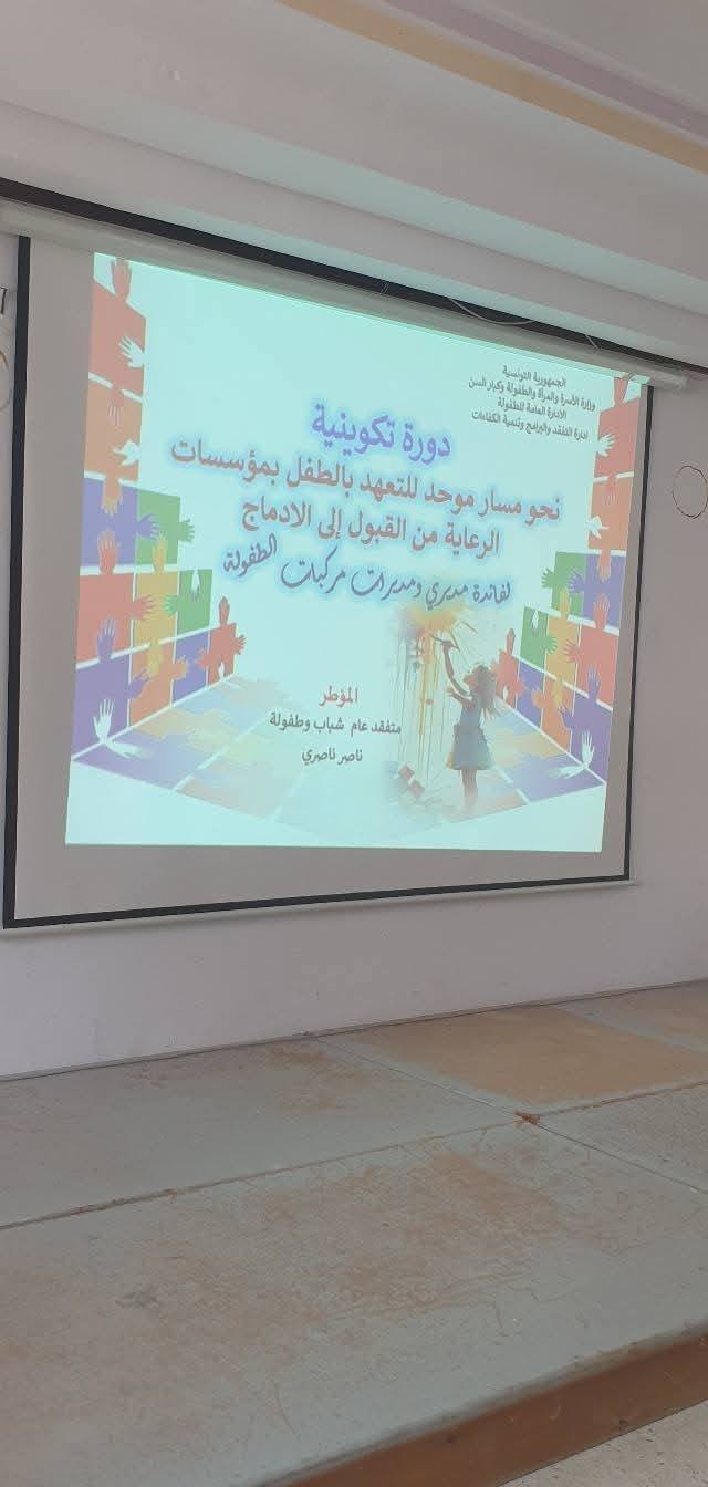 وكانت الوزارة قد نظمت دورة تكوينيّة أخرى يومي 20 و22 من أكتوبر الجاري لفائدة 80 مشاركا من مديريات ومديري مركبات الطفولة، تمحورت حول مسار التعهد بالأطفال من القبول إلى مرحلة الإدماج أمّنها ثلة من إطارات التفقد.