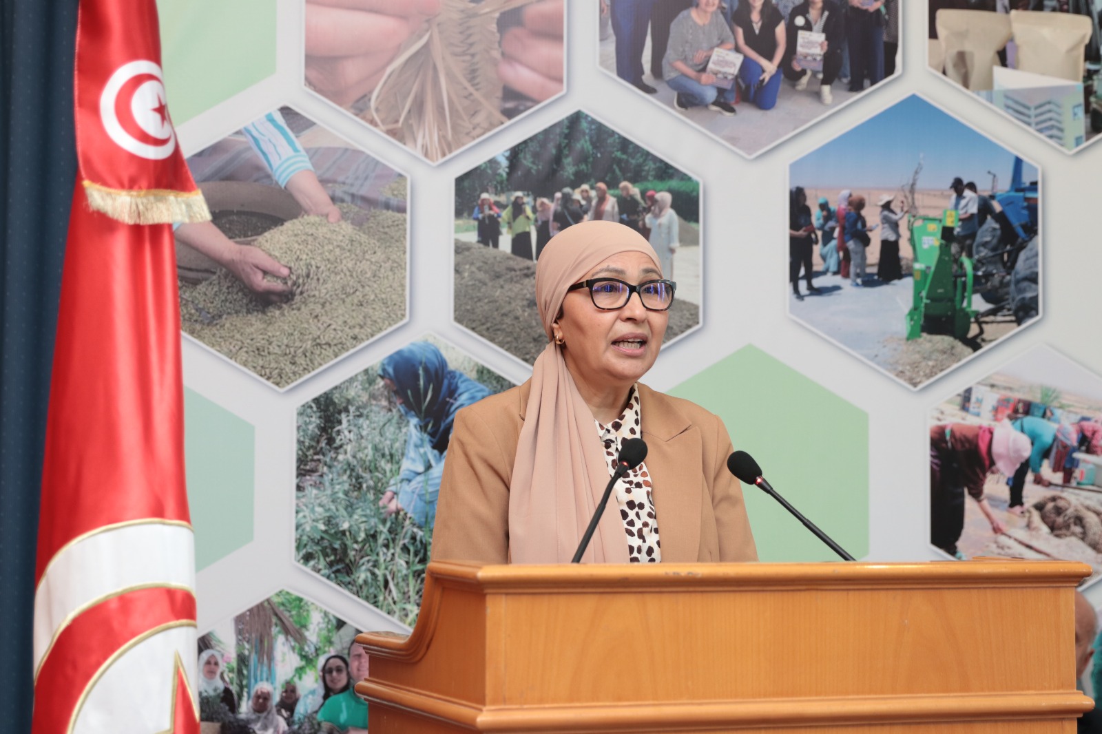 كما بيّنت أنّ المرسوم الرئاسيّ عدد 4 لسنة 2024 قد أرسى نظاما شاملا للحماية الاجتماعية لفائدة العاملات الفلاحيات، مشيرة إلى جملة من التدابير الخصوصيّة لدعم إدماج المرأة اقتصاديا من خلال تمويل مشاريع النساء والفتيات في المناطق الريفية وإطلاق في أوت 2025 برنامجا لإحداث 40 فضاء للمرافقة والتكوين والتسويق في أفق 2030، والانطلاق في تنفيذه ببعث مركز بمنطقة دجبّة من ولاية باجة، والعمل على تركيز المنصة الوطنية للتسويق لتيسير نفاذ المنتجات إلى الأسواق وتطوير التسويق الرقمي.