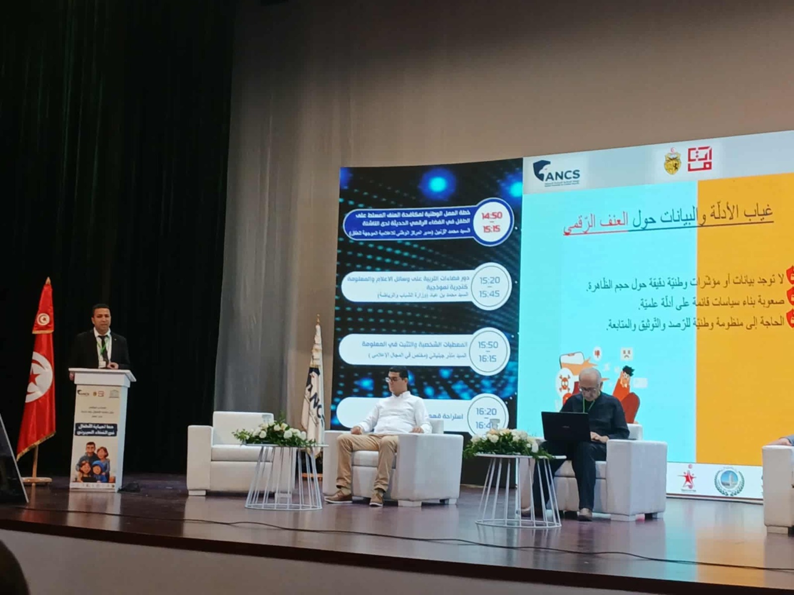 وقدّم السيّد محمد زنين مدير المركز الوطني للإعلاميّة الموجّهة للطفل خلال هذا المنتدى، الذي نظمته الوكالة الوطنية للسلامة السيبرنية، مداخلة حول خطة العمل الوطنيّة لمكافحة العنف المسلّط على الطفل في الفضاء الرقمي وأبرز مكوناتها وآليات تنفيذها، إلى جانب عرض أهمّ إنتاجات المركز الرقميّة وبرامجه التوعويّة الهادفة إلى الوقاية من مخاطر الفضاء الرقمي وتعزيز ثقافة الاستخدام الآمن للتكنولوجيا لدى الأطفال والأولياء على حدّ سواء.