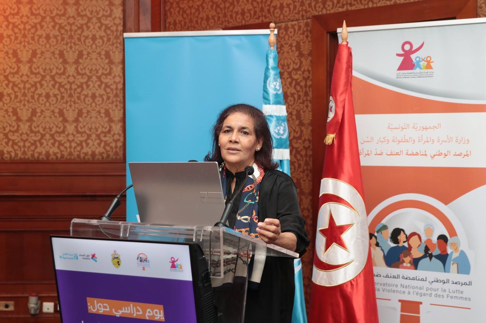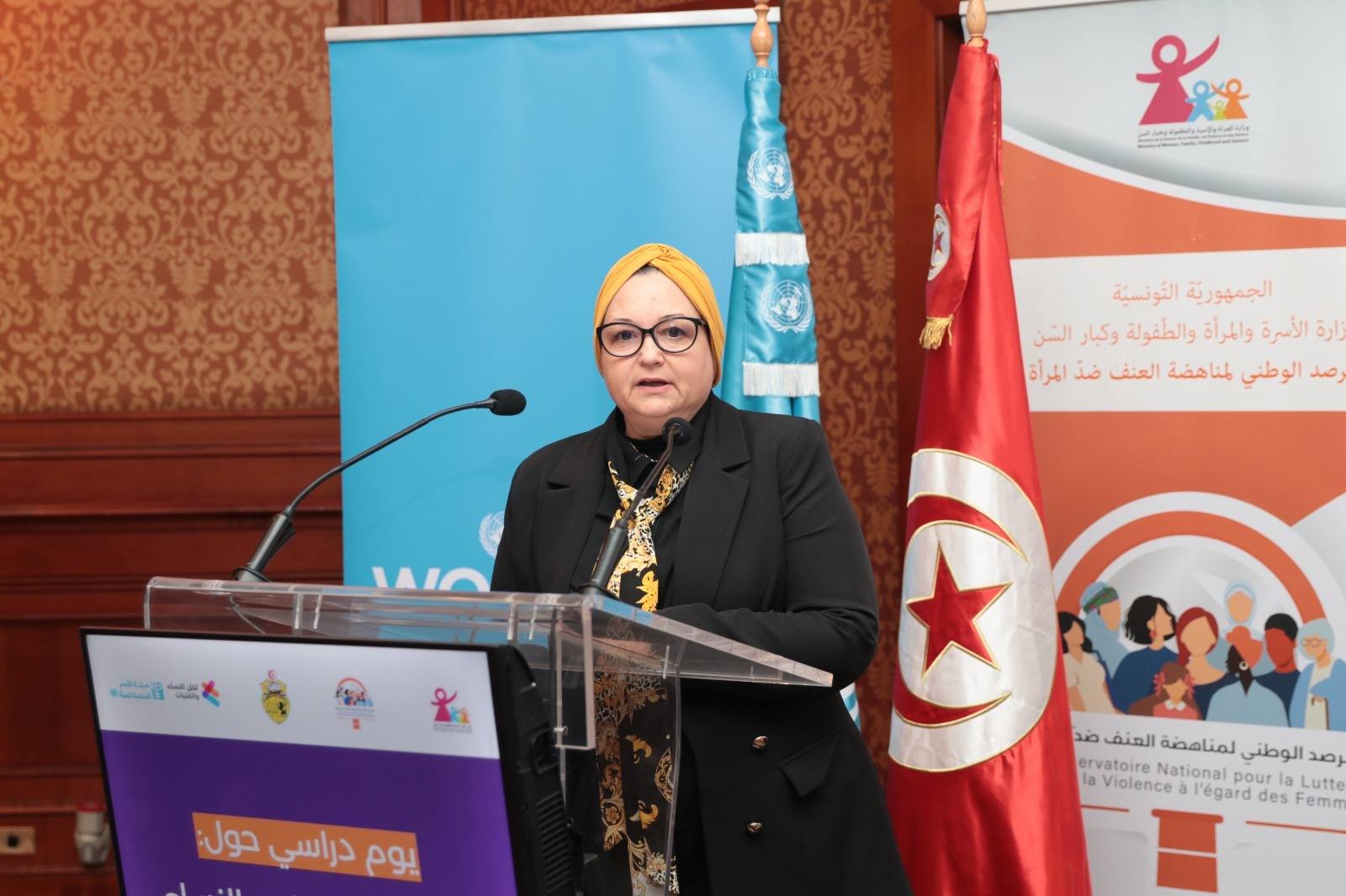 ودعت الوزيرة في كلمة ألقتها نيابة عنها السيدة لمياء الحباسي، المكلّفة بتسيير المرصد الوطني لمناهضة العنف ضد المرأة، إلى ضرورة تعزيز العمل الشبكيّ والتشاركيّ قصد تطوير الأطر العلميّة والمنهجيّات لرصد الظّاهرة ومعالجتها في أبعادها المتعددّة مع إنتاج بيانات مصنّفة حسب نوع الإعاقة وهو ما سيسمح بفهم الظّاهرة والحرص على تصميم سياسات دقيقة وضبط تدخّلات متخصّصة تتلاءم مع احتياجات ذوات الإعاقة وتستجيب لخصوصيّاتهنّ.