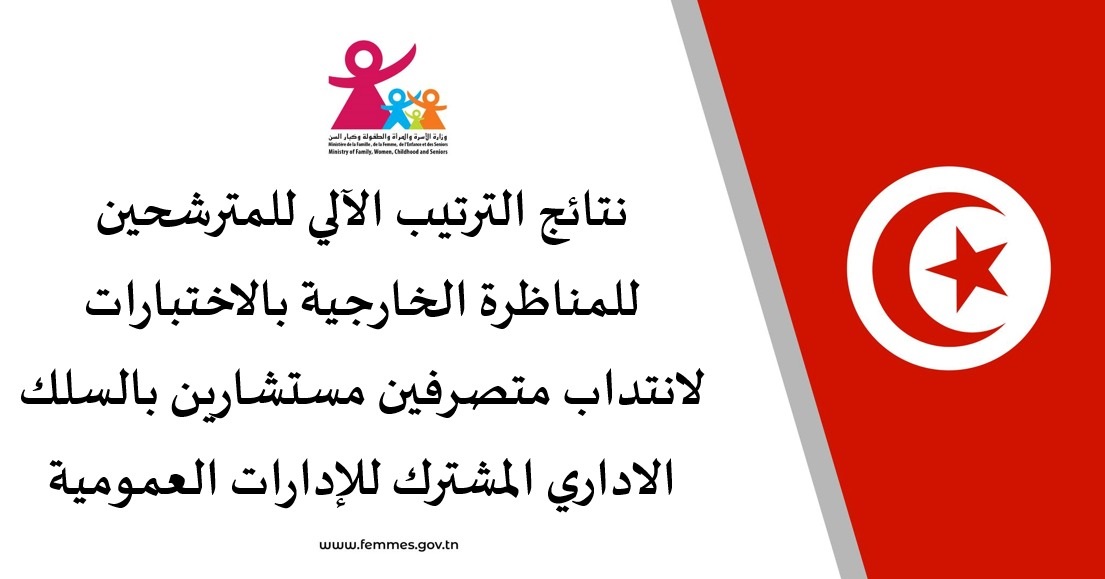 تُعلم وزارة الأسرة والمرأة والطفولة وكبار السن عن نتائج الترتيب الآلي للمترشحين/ات للمناظرة الخارجية بالاختبارات لانتداب متصرفين مستشارين بالسلك الإداري المشترك للإدارات العمومية (اختصاص حقوق وعلوم اقتصادية) بعنوان سنة 2025: