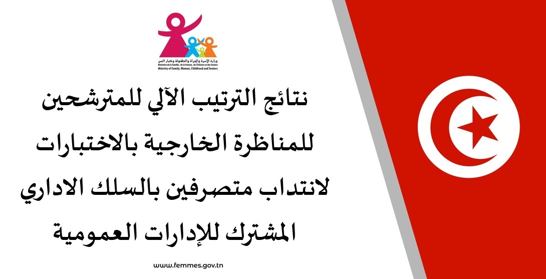 تُعلم وزارة الأسرة والمرأة والطفولة وكبار السن عن نتائج الترتيب الآلي للمترشحين/ات للمناظرة الخارجية بالاختبارات لانتداب متصرفين بالسلك الإداري المشترك للإدارات العمومية (اختصاص حقوق وعلوم اقتصادية) بعنوان سنة 2025: