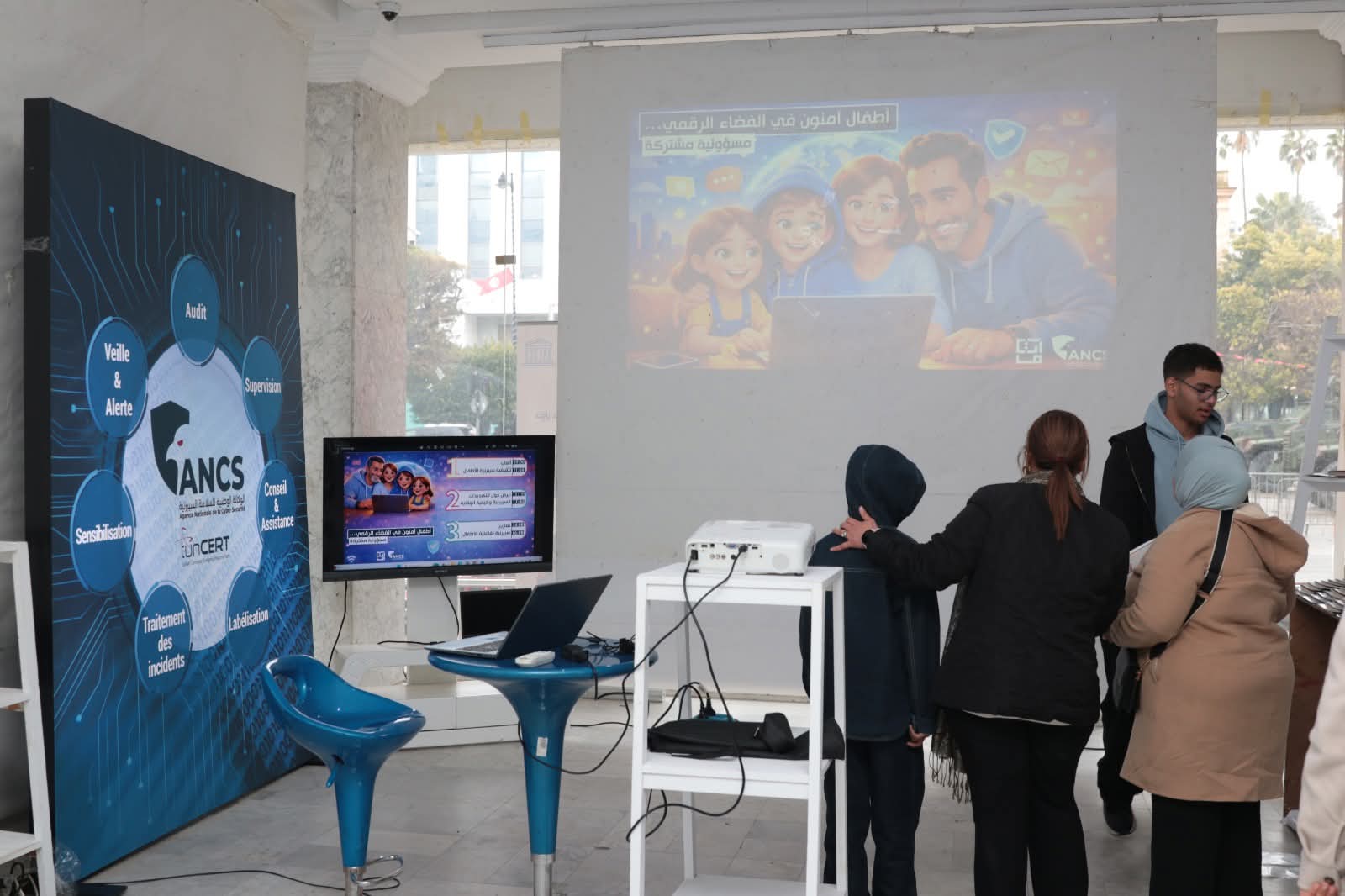 وتضمنت هذه التظاهرة عديد الأجنحة لعرض المحامل الرقمية المنجزة في مجال حماية الأطفال من مخاطر الأنترنات وتقديم ارشادات رقمية مباشرة لفائدة الأولياء حول دعمهم في مرافقة ابحار أبنائهم على شبكة الأنترنات و ضمان نفاذهم الآمن إلى المنصّات الرقميّة.