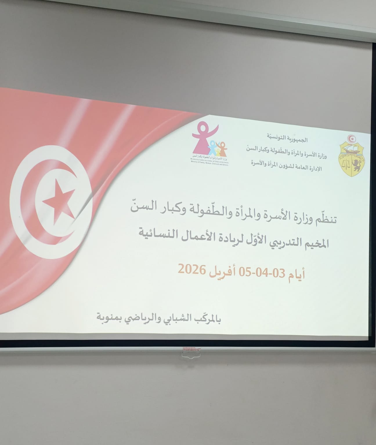 تنظم وزارة الأسرة والمرأة والطفولة وكبار السنّ بداية من اليوم الجمعة 03 أفريل 2026 بالمركب الشبابي والرياضي بمنوبة وعلى مدى ثلاثة أيّام المخيّم التدريبيّ الأوّل لريادة الأعمال النسائيّة بعنوان "من الفكرة إلى الإنجاز: خطوات ريادة الأعمال النسائيّة".