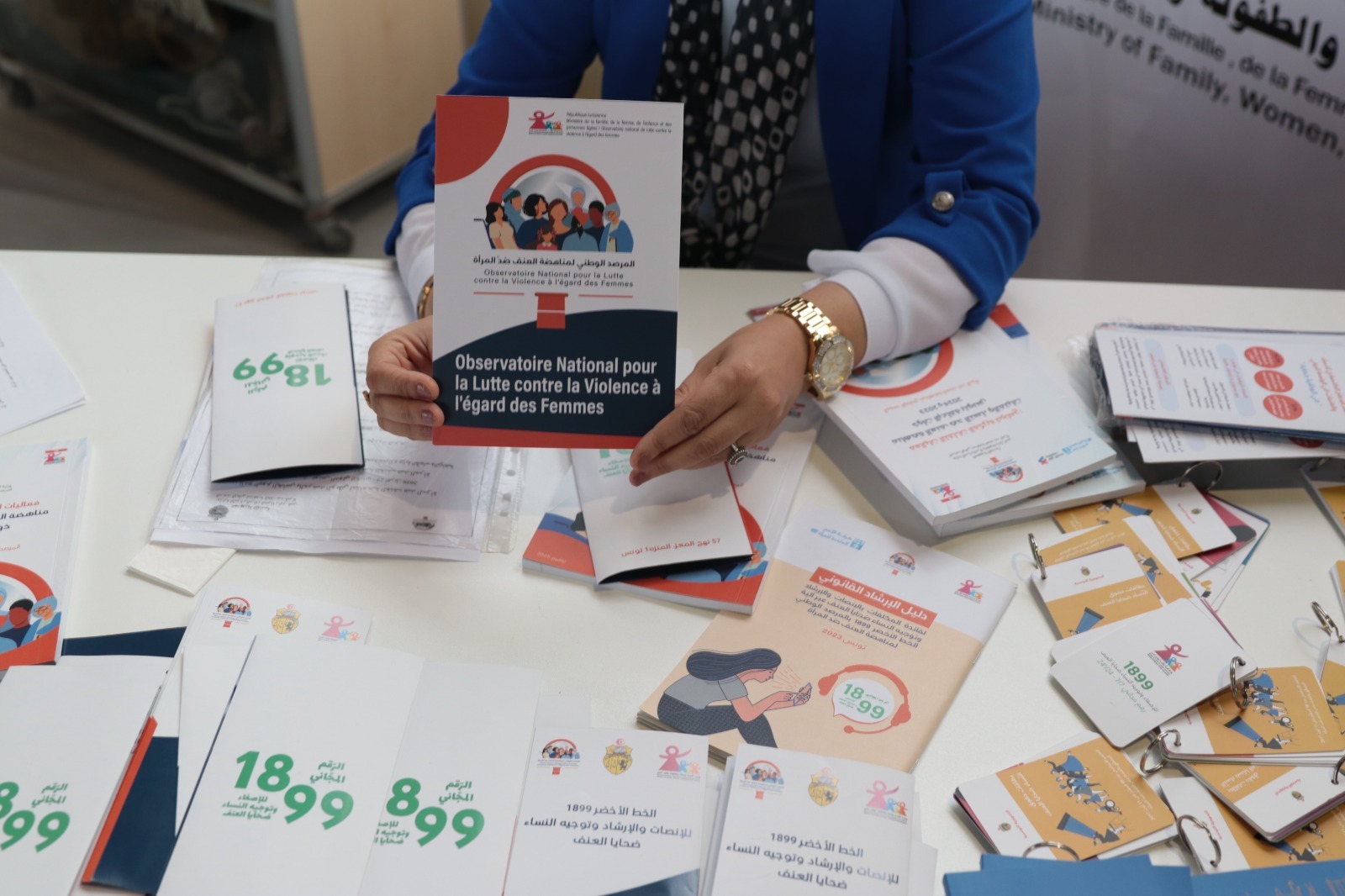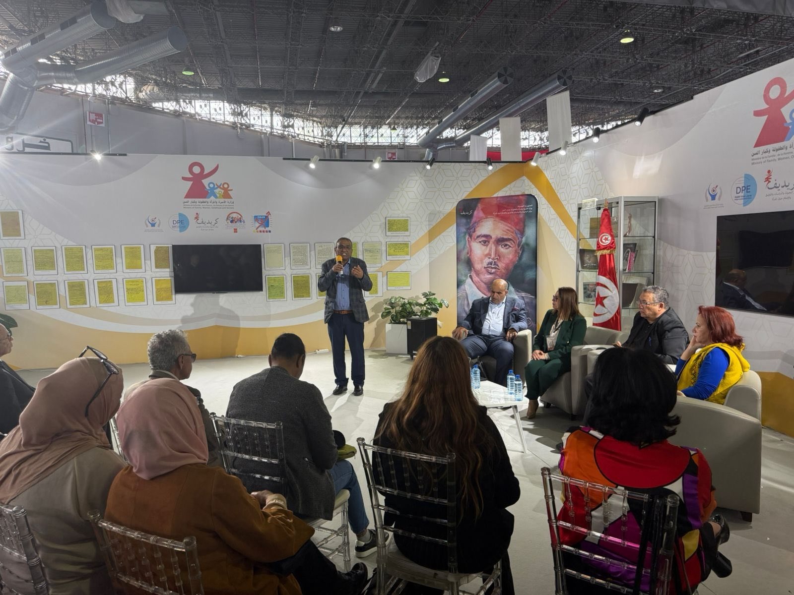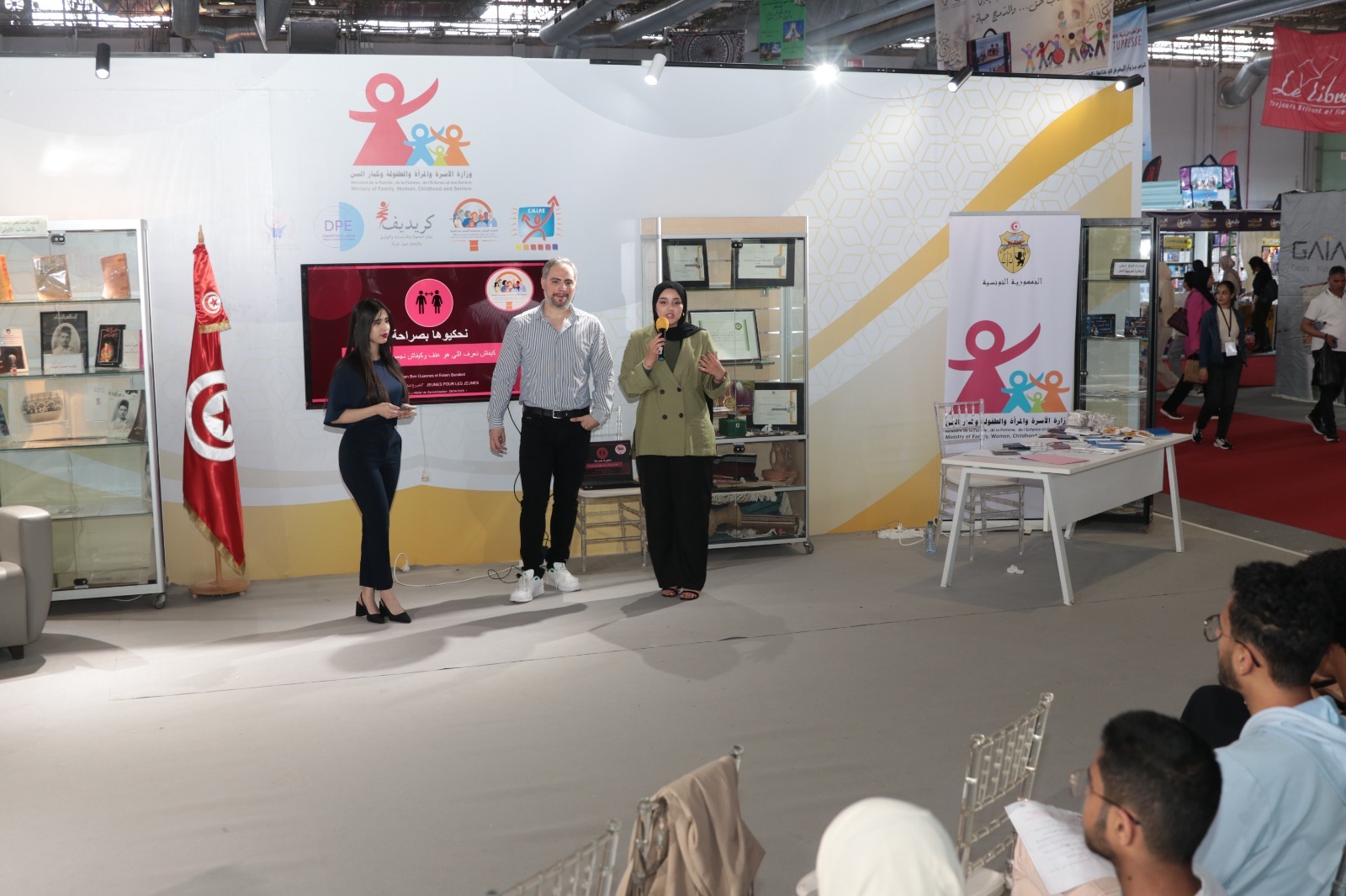 احتضن جناح وزارة الأسرة والمرأة والطفولة وكبار السن يوم الأربعاء 29 أفريل 2026 نشاطا تفاعليّا نظمه المرصد الوطني لمناهضة العنف ضد المرأة خُصّص للتعريف بمختلف خدمات المرصد على غرار الخط الأخضر 1899 للإنصات والإرشاد وتوجيه النساء ضحايا العنف وتوزيع مطويات توعويّة على زائري المعرض.